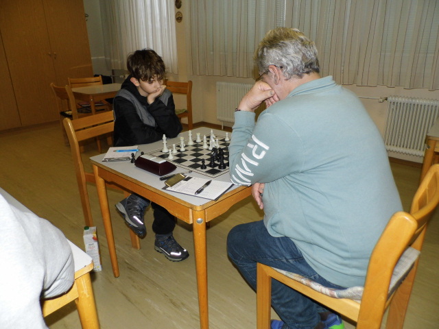 dem SK Kindberg und dem SK Alpine Trofaiach 3 setzte der Jungstar Richard Reichhütter auf Brett 4 gegen Karl Fasching gleich kräftige Akzente. Nach einer sauber gestalteten Eröffnung schaffte er sich einen schönen Raumvorteil, den er auch gleich für einen gefährlichen Königsangriff nutzte. In Bedrängnis fand der Kindberger mehrmals nicht die besten Verteidigungszüge, und so benötigte Richard auch nicht die allerbesten Angriffszüge. Sehr schön spielte er sich im 30. Zug durch ein Turmopfer ein Matt in zwei heraus, was Karl Fasching sofort zur Aufgabe bewog. Gratulation zum zweiten Sieg in Folge in der 1. Klasse. Auf Brett 2 entwickelte sich bei Dietmar Schnuderl gegen Richard Pieber schon nach den ersten 10 Zügen ein taktisch ziemlich schwer einzuschätzendes „Handgemenge“. Und sieben Züge später hätte Weiß bereits eine Vorentscheidung durch den Gewinn einer Figur herbeiführen können. Doch durch ein vielleicht zu mutiges Figurenopfer stand es plötzlich umgekehrt. Richard Pieber konnte das nicht nutzen und so war es Dietmar Schnuderl vorbehalten, der mit seinem exzellenten Figurenspiel die unsichere Stellung des schwarzen Königs für einen gelungenen Mattangriff nutzte. Es stand 2 : 0 für Trofaiach. Die endgültige Entscheidung sollte auf den Brettern 1 und 3 fallen. Manfred Zink geriet auf Brett 3 gegen Horst Schmied eine Qualität in Rückstand und hoffte, dass sich auf Brett 1 noch ein Remis ausging. Leider erfüllte sich die Hoffnung nicht, denn Andreas Prednik kam zwar aus der Eröffnung gut heraus, verlor aber in weiterer Folge gegen Dr. Hans Kröppl eine Figur ohne Kompensation und musste aufgeben. Nun hieß es auf Brett 3 alles oder nichts. Bei einer Qualität im Rückstand konnte nur mehr ein erfolgreicher Königsangriff retten. Die Stellung des Trofaiachers war nicht schlecht und ein zu gewagter Bauerngewinn von Weiß ermöglichte schließlich die Zerschlagung der weißen Königsstellung. Und wie sagt der Leobner Schachpädagoge Mag. Karl-Heinz Schein: „Drei Figuren sind ein Matt“. So ergab sich auch im 40. Zug die seltene Möglichkeit, wirklich matt zu setzen.