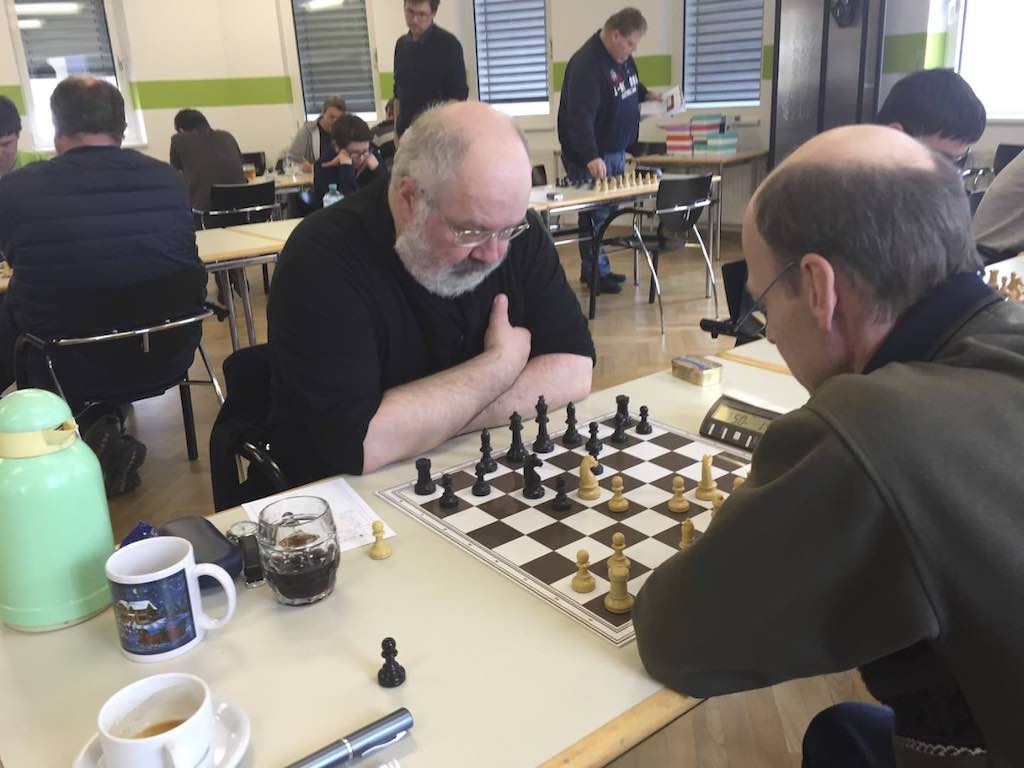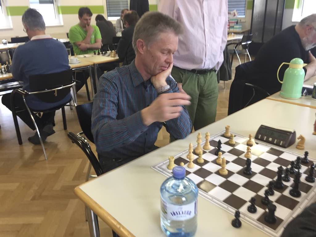 Manfred Zink verpatzte leider schon nach wenigen Zügen durch einen völlig unverständlichen Anfängerfehler seine Partie gegen Guenter Haiden.