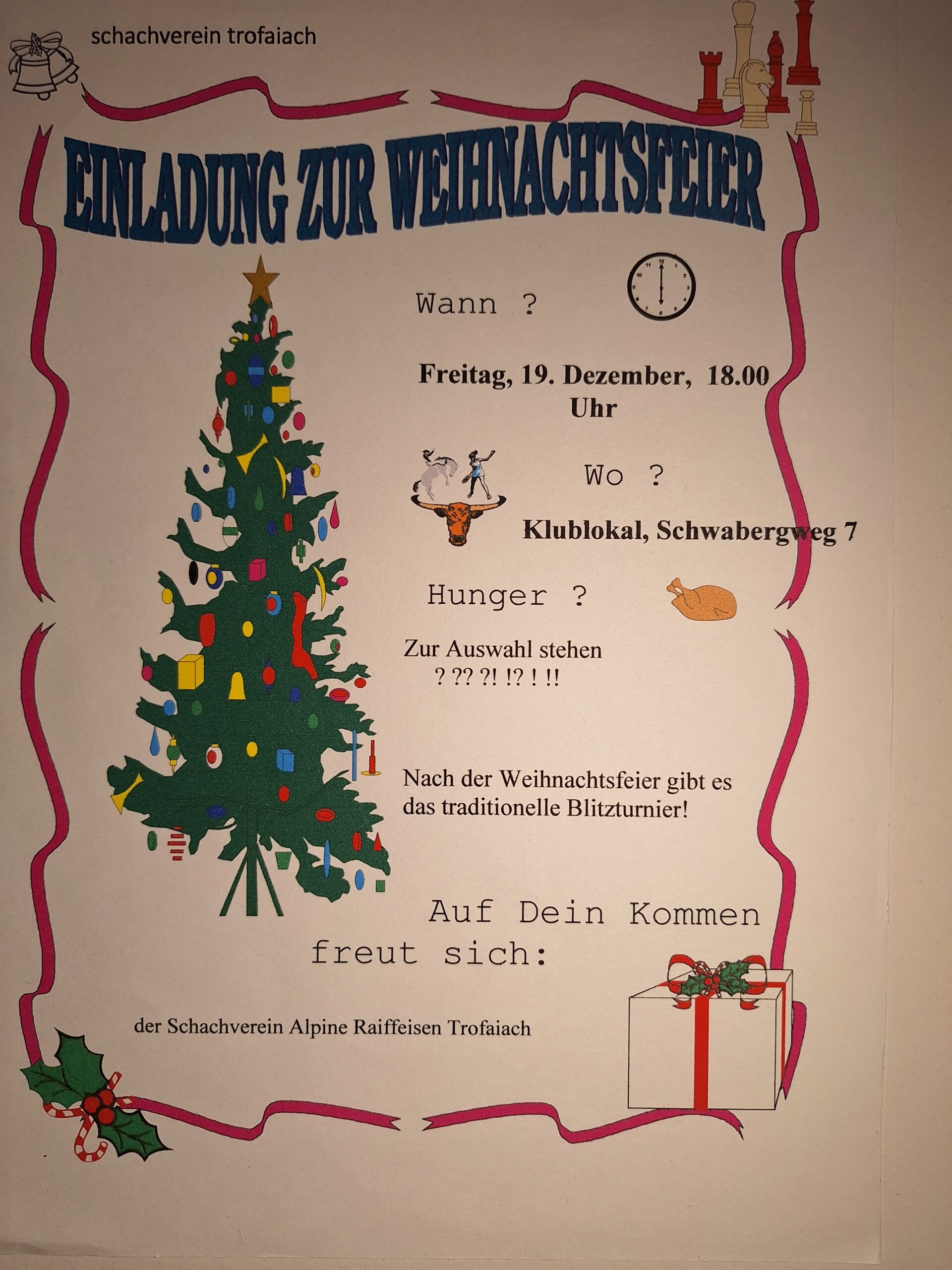 Alle Mitglieder des SC Alpine Raika Trofaiach sind wieder zur alljährlich stattfindenden Weihnachtsfeier eingeladen.