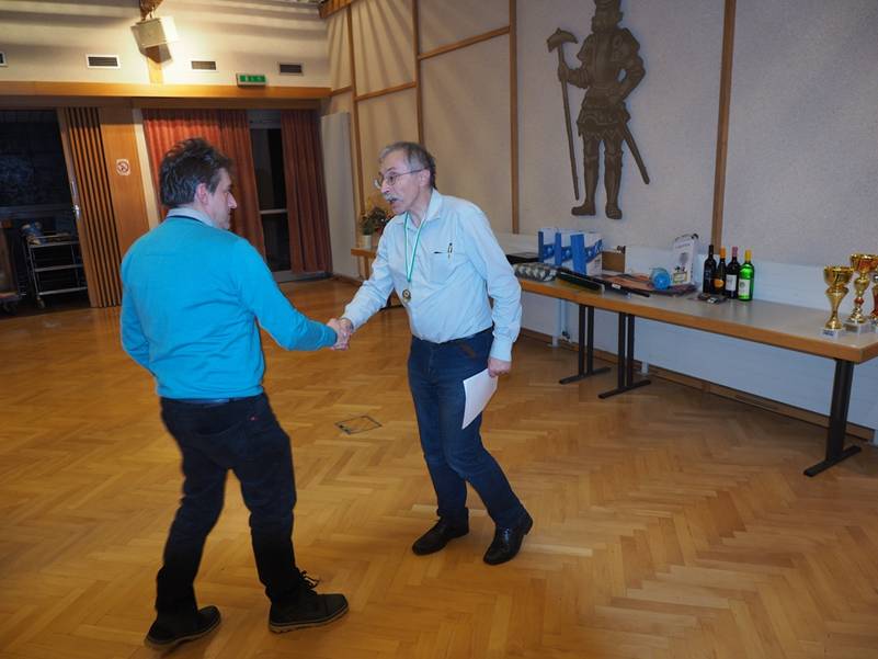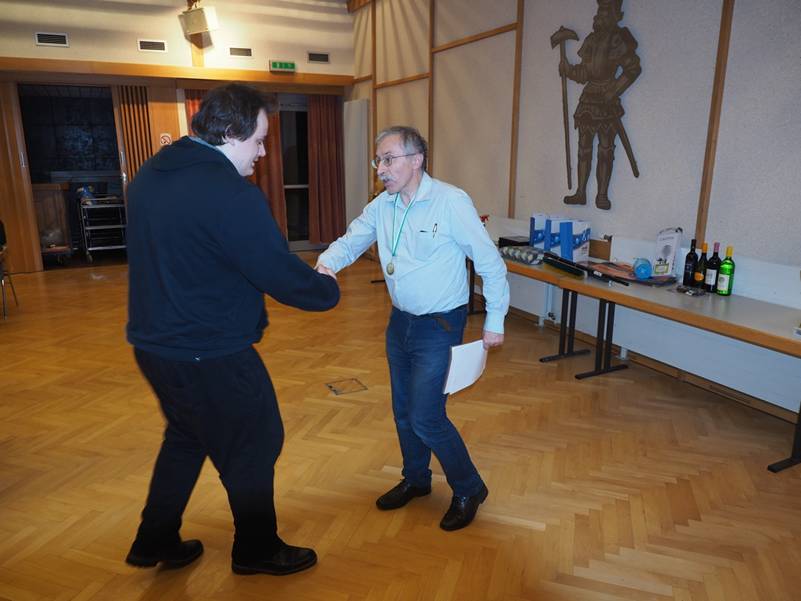 Nach 13 Runden setzte sich Gerd Mitter in dem überschaubaren Teilnehmerfeld durch. Mit 12,5 aus 13 war er dieses Jahr (fast) nicht zu stoppen. Lediglich Karl Hofbauer luchste ihm einen halben Punkt ab.