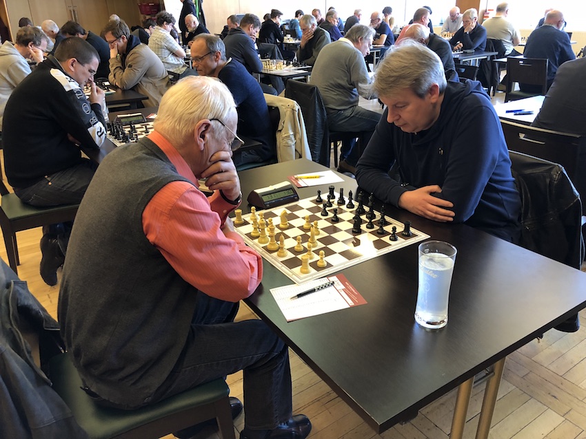 In einer schwierigen Stellung einigte sich Bernhard Schneeberger mit seinem Gegner remis. Es wäre interessant gewesen, wie es weitergehen hätte können.